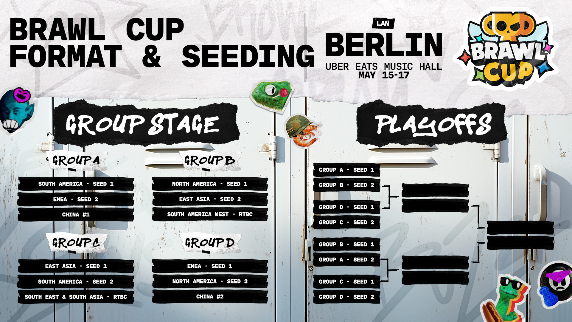 Brawl Cup takes place May 15-17 at the Uber Eats Music Hall Arena in Berlin, Germany. Venue doors will open at 12pm local time (12:00 CEST) each day. The show will start at 12:45pm (subject to change).