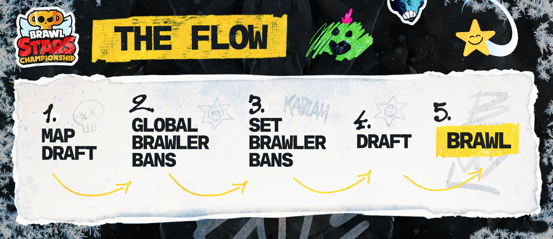 Map Draft > Global Match Bans > Brawler Draft (Picks & Bans) > Into Game