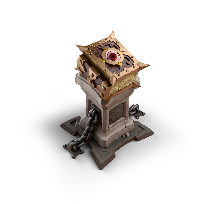 The reason all this cosmic chaos is going down! Unlock the Cursed Tome from the Trader Shop and keep this sinister souvenir in your Village.