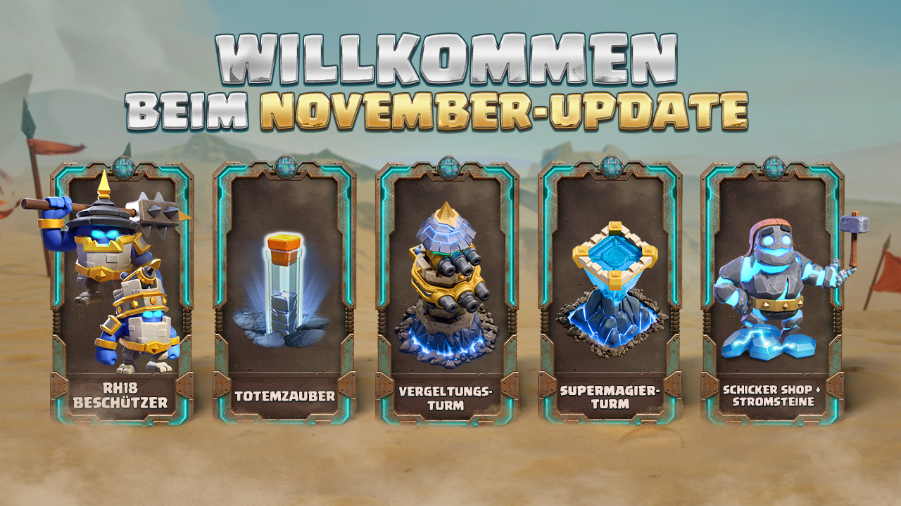Es gibt neue Level für einige Helden, Gebäude, Truppen, Zauber, Belagerungsmaschinen und auch Begleiter!