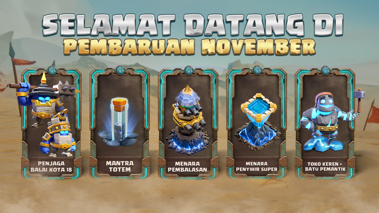 Kami menerapkan perubahan berikut di Toko Liga Perang Klan: biaya untuk Ramuan Sumber Daya akan bertambah dari 5 Medali Liga Perang Klan menjadi 10 Medali Liga Perang Klan.