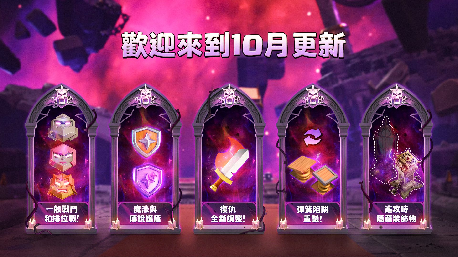「更多設定」中新增開關選項,可在進攻時隱藏防守方村莊的障礙物和裝飾。進攻開始幾秒後,障礙物和裝飾將會消失。