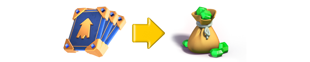 アップデート後、未使用の魔法の本(ノーマル~ウルトラレア)は相応の数のワイルドカードに、魔法のコインはゴールドに変換されます。強化の秘伝書はエメラルドに変換され、上述したエメラルドの新資源バランスの一環として使用できるようになります。そして進行をさらにスムーズにするため、ゲーム内で獲得可能なランダムカードの枚数を増加させます。